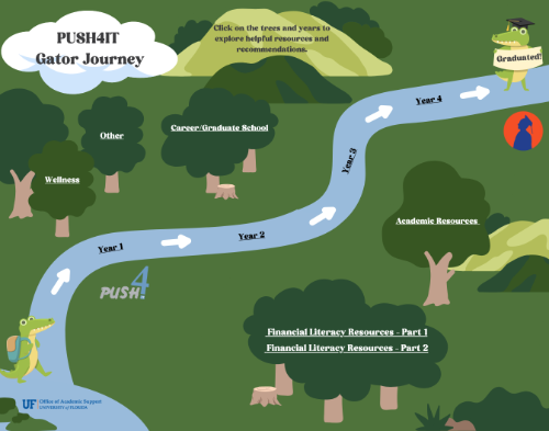 PUSH4IT is an OAS initiative for UF first-year students committed to graduating on time while maximizing their college experience. The program helps students plan and take advantage of opportunities that enhance their academic and personal growth. Each student meets regularly with a PUSH4it coach for guidance and has access to mentorship from graduate-level professionals. PUSH4it also offers yearly experiences that foster development across academic and professional domains, all tailored to each student’s unique goals.